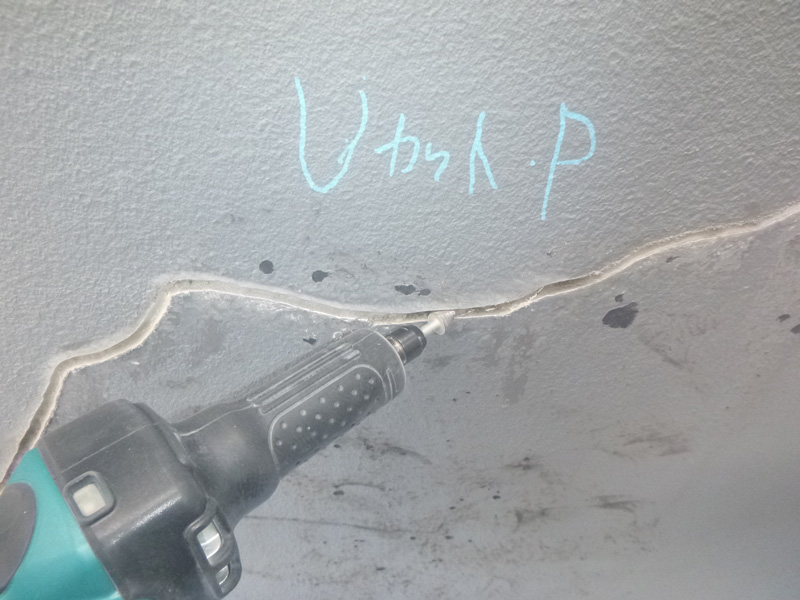 ヒビ補修跡の処理
